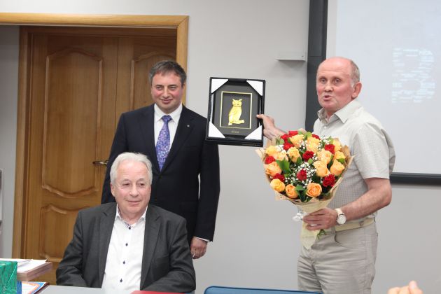 Б.И. Даньшин, А.А. Рындин и представители А.А. Жукова подарили коллективу института памятные подарки.