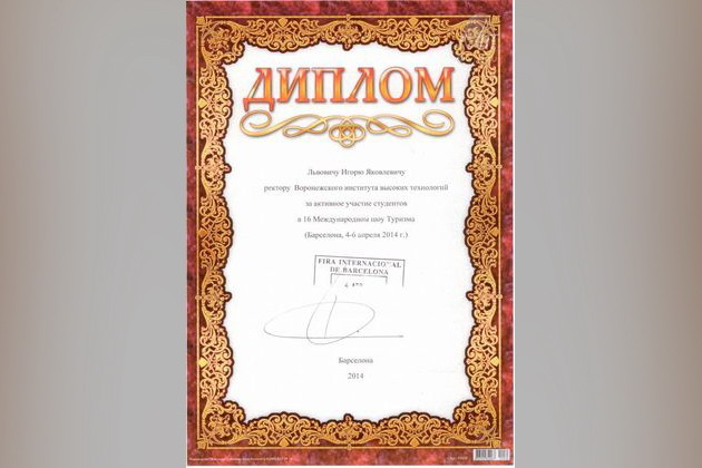 Воронежский институт высоких технологий награжден дипломом