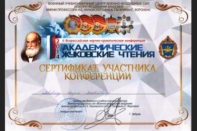 C 25 по 27 ноября 2014 года в ВУНЦ ВВС "Военно-воздушная академия имени профессора Н.Е. Жуковского и Ю.А. Гагарина" (г. Воронеж) состоялась Всероссийская научно-практическая конференция "АКАДЕМИЧЕСКИЕ ЖУКОВСКИЕ ЧТЕНИЯ".