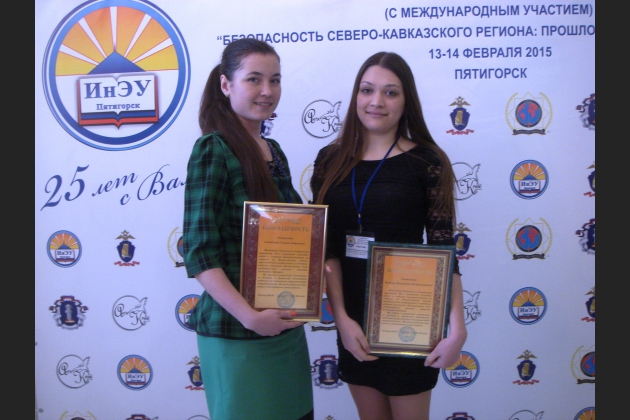 С 13 по 14 февраля студентки Самойлова Ульяна и Исакова Маргарита представляли Воронежский институт высоких технологий на Всероссийской научно-практической конференции в Пятигорске (с международным участием) Конференция проходила в Институте экономики и управления г. Пятигорск.