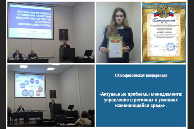 6 ноября 2015 г. в СПбГУ состоялась XIX Всероссийская конференция с международным участием «Актуальные проблемы менеджмента: управление в регионах в условиях изменяющейся среды».