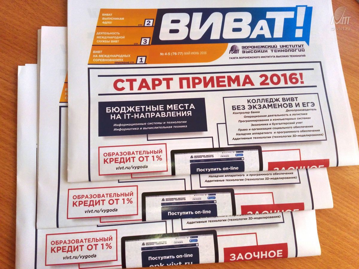 28 июня в ВИВТ состоялась традиционная встреча студенческого актива с ректором. На встрече присутствовали представители творческих студенческих объединений, волонтеров, студенческого научного клуба и спортсменов. Открыл мероприятие председатель Большого совета НКО Воронежской области В. В. Черников. Он вручил благодарности за активную и плодотворную работу в воспитании молодежи и подготовке волонтерских групп для проведения массовых мероприятий Воронежскому институту высоких технологий.
