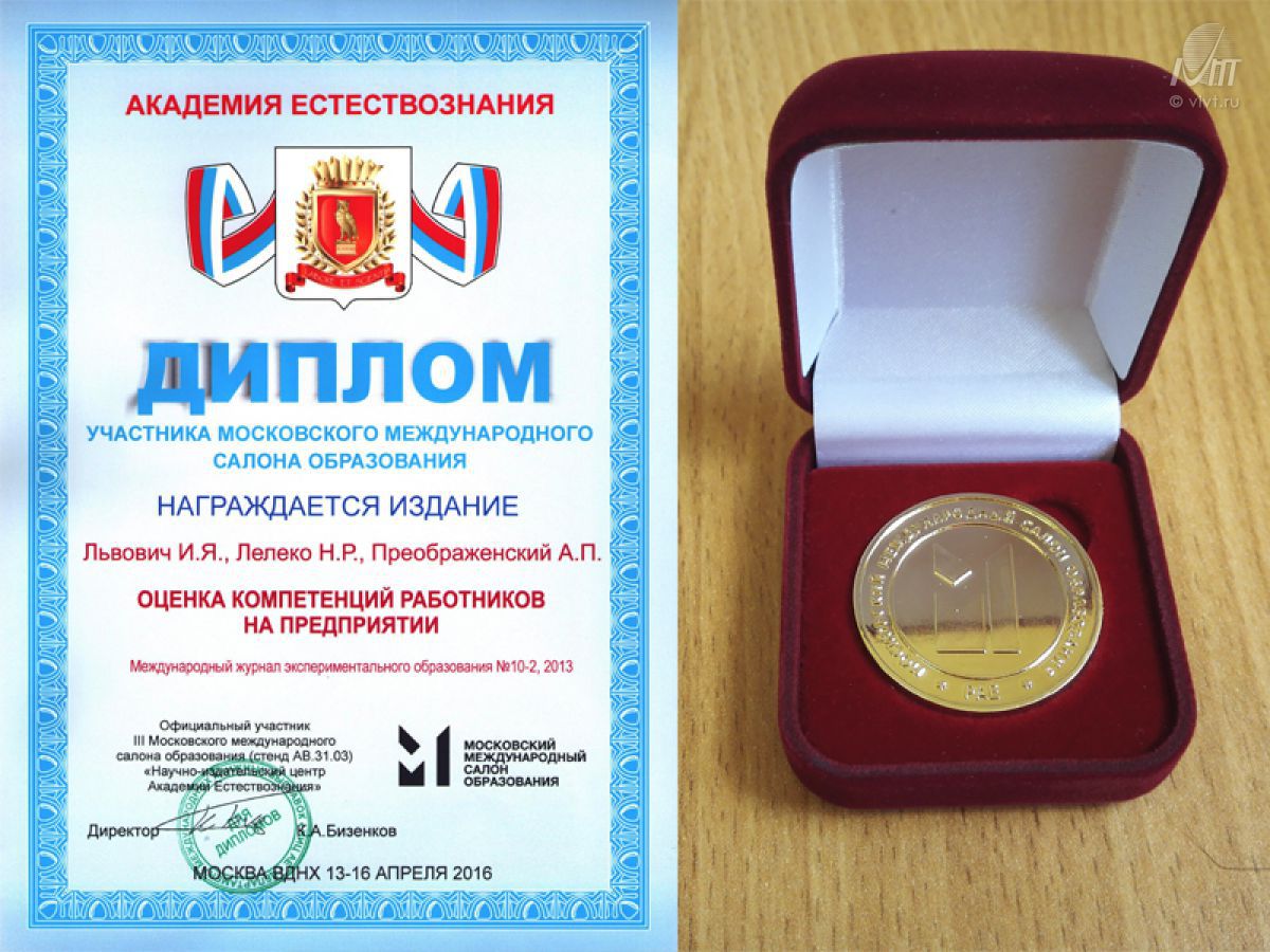 26-29 июня 2016 г. сотрудница Регионального центра устной истории, действующего в структуре ВИВТ, О. И. Кулинченко приняла участие в XVI ежегодной летней сессии Центра «Холокост» «Уроки Холокоста – путь к толерантности». Семинар предназначен для учителей школ, сотрудников средних специальных и высших учебных заведений, институтов повышения квалификации с целью обучения, а также обмена опытом в области преподавания темы Холокоста.Cтатья «Оценка компетенций работников на предприятии» (опубликованная в журнале «Международный журнал экспериментального образования», авторы И.Я. Львович, Н.Р. Лелеко, А.П. Преображенский) была отобрана для представления и обсуждения на Московском международном салоне образования 2016, проходившим на ВДНХ 13-16 апреля 2016 г.